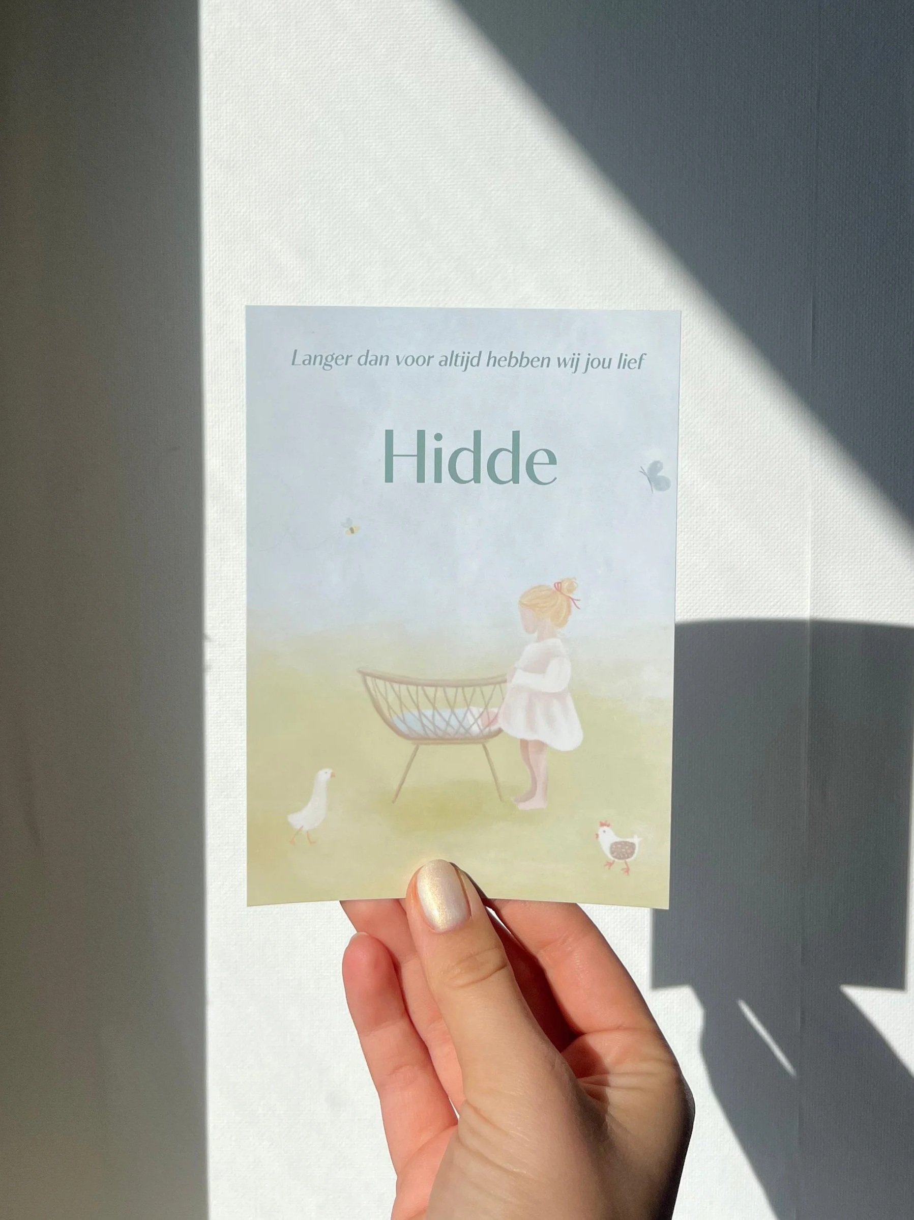 In september mocht ik it geboortekaartje ontwerpen en illustreren voor Hidde. Samen met de ouders ging ik om de tekentafel om de basis te bedenken. De grote zus kreeg een centrale rol op het kaartje, en ook persoonlijke details, zoals verschillende boerderijfiguren, kregen een plek in het ontwerp.